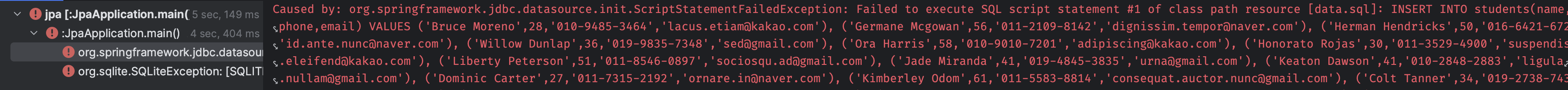 임시데이터를 넣어 테스트를 진행하려 springboot의 yml파일에 data.sql파일을 실행하도록 했는데 쿼리가 들어가지 않는 문제가 있었습니다.
