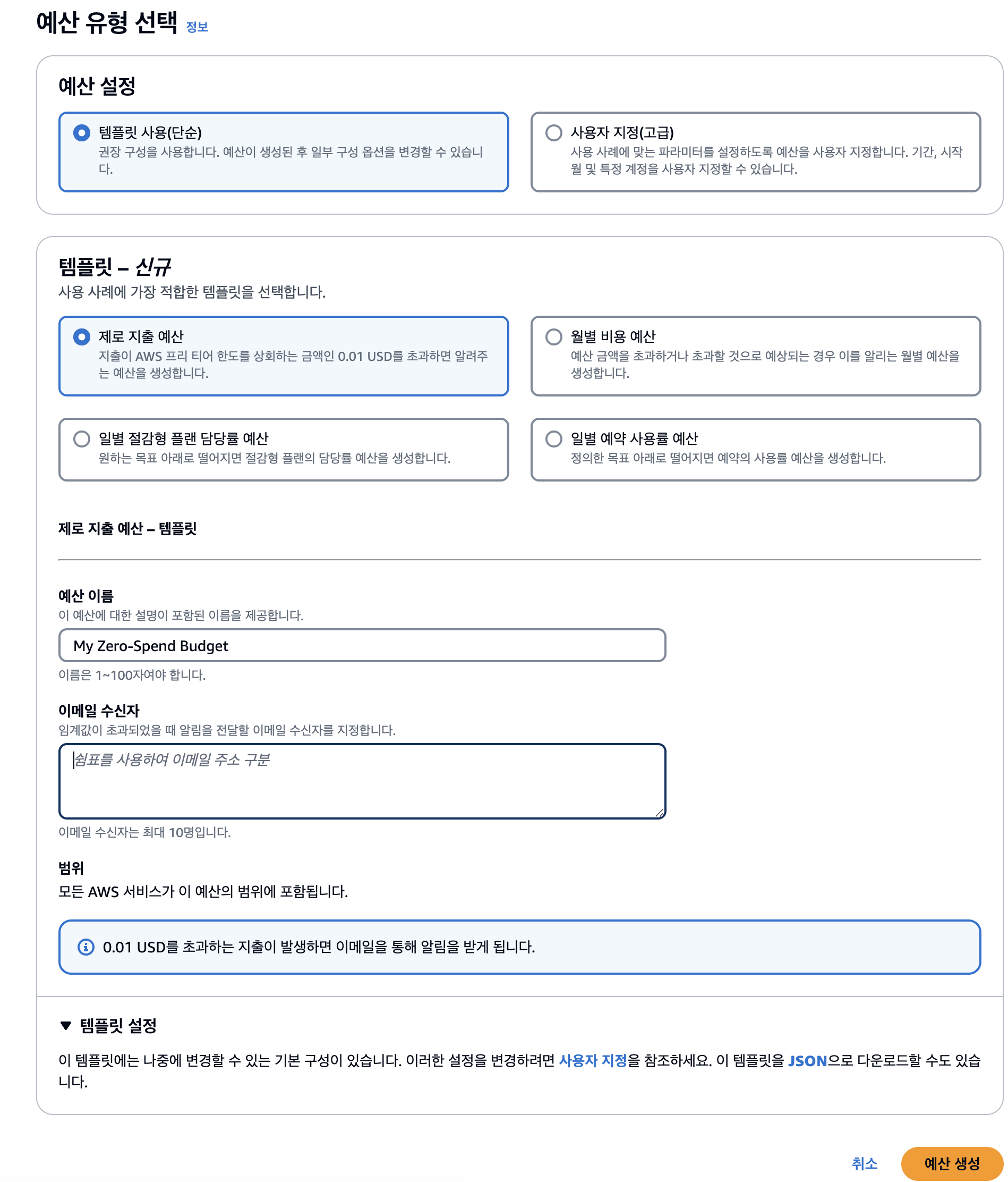 3. 프리티어의 경우 다음과 같이 설정할 수 있다. (이메일을 설정하여 예산이 넘어가는 경우 알림을 받을 수 있다)