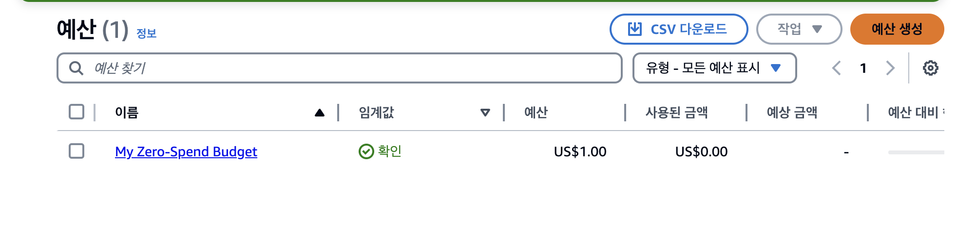 5. 이후 확인확인 을 클릭하여 끝내면 예산이 생성이 다음과 같이 완료된다.