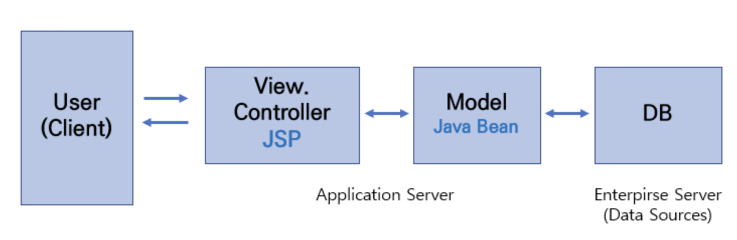 (View와 Controller를 모두 JSP가 담당하는 형태를 가진다)