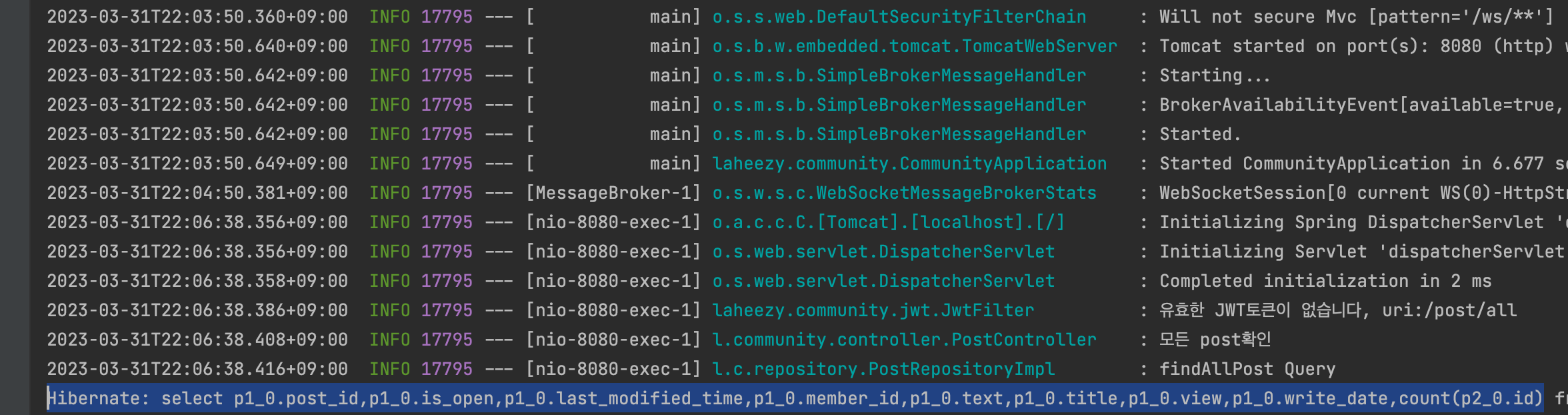 지금 까지 모든 포스트를 확인하면 위처럼 포스트의 개수만큼 쿼리를 조회하였다.