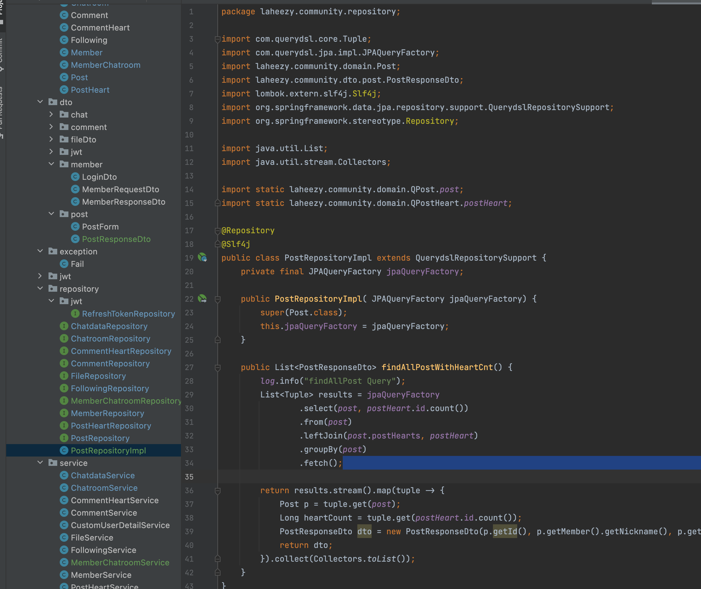 public List<PostResponseDto> findAllPostWithHeartCnt() {
