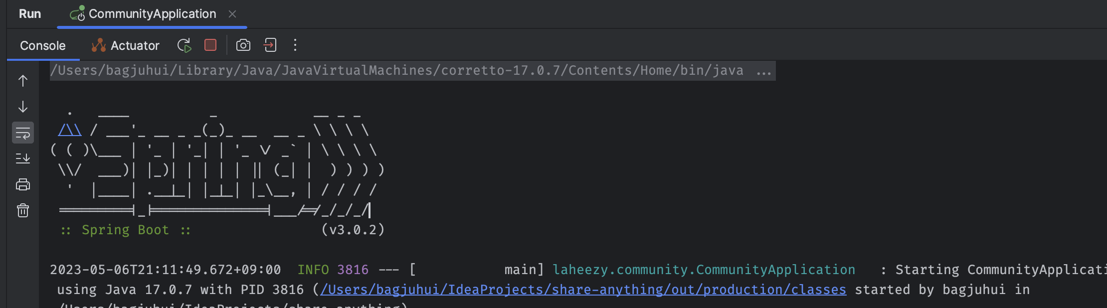 이렇게 하고 다시 빌드하니 다시 스프링이 실행되는 것을 확인할 수 있었습니다.