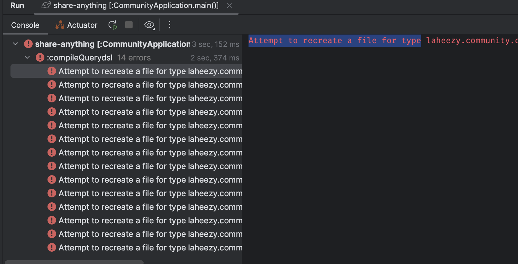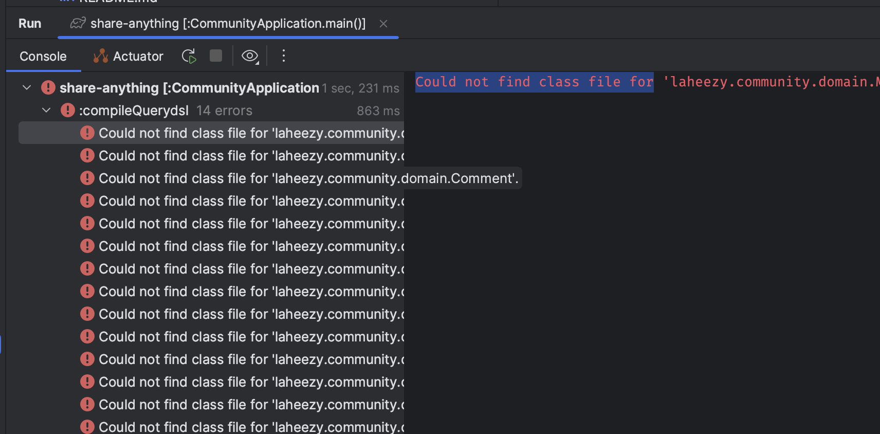 querydsl 명령어를 그래들에서 쉽게 볼수 있는 플러그인을 추가하는 경우 이런 에러가 난다고 하는것 같습니다.