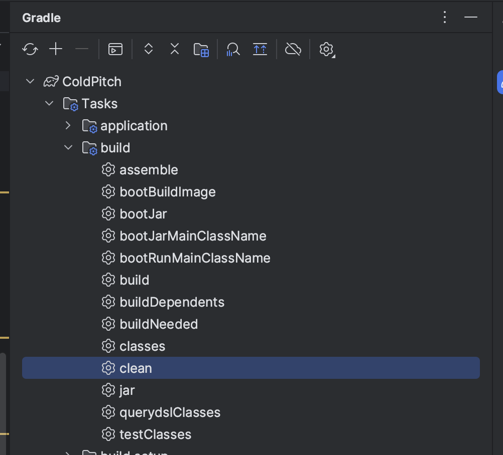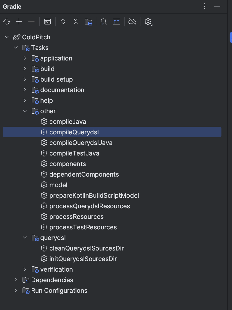 그리고 queryDsl 생성파일을 제거하거나, gradle에서 clean 후에 complie후 실행 시켰습니다.
